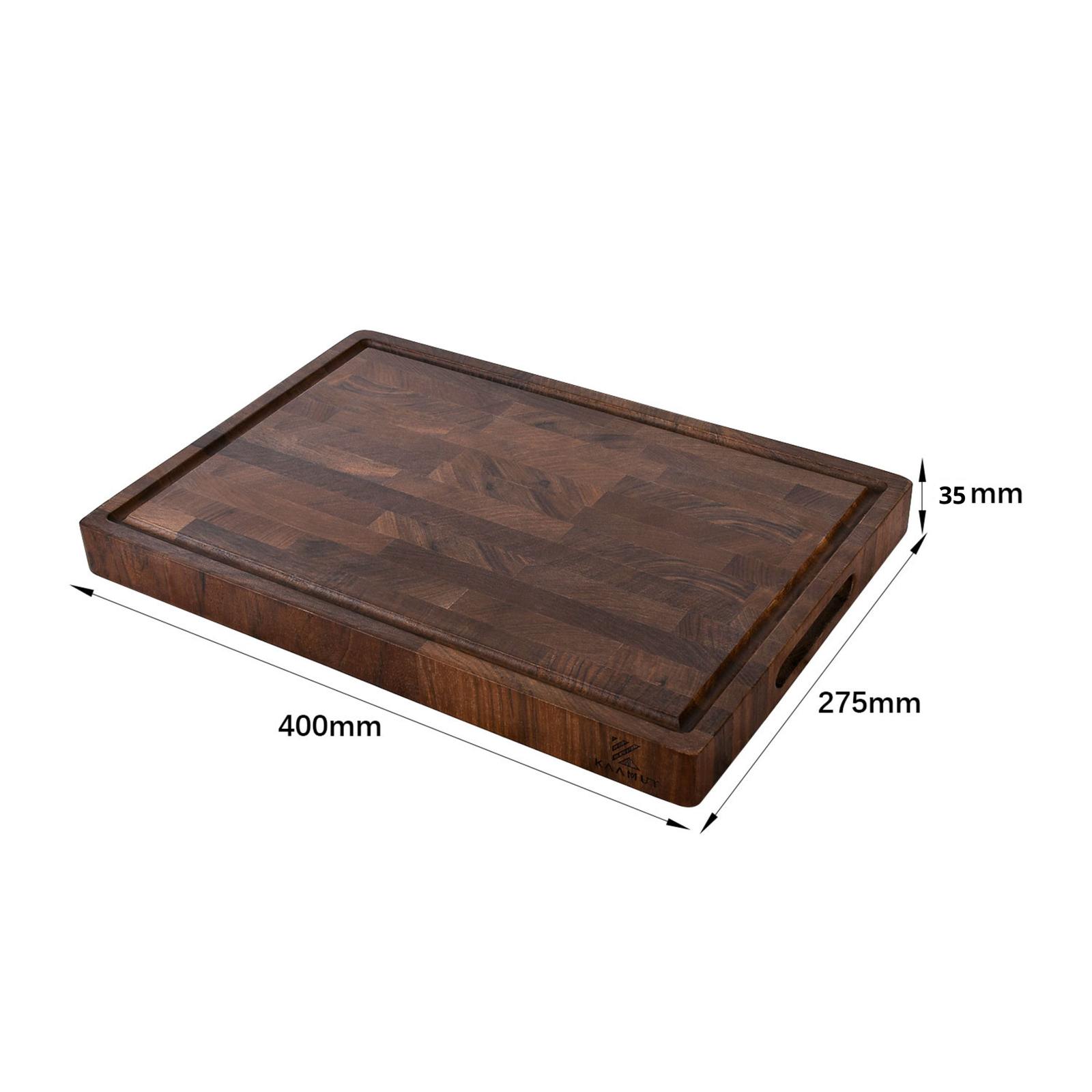 Premium hardwood known for durability, stability, and deep rich color. - End-Grain Construction