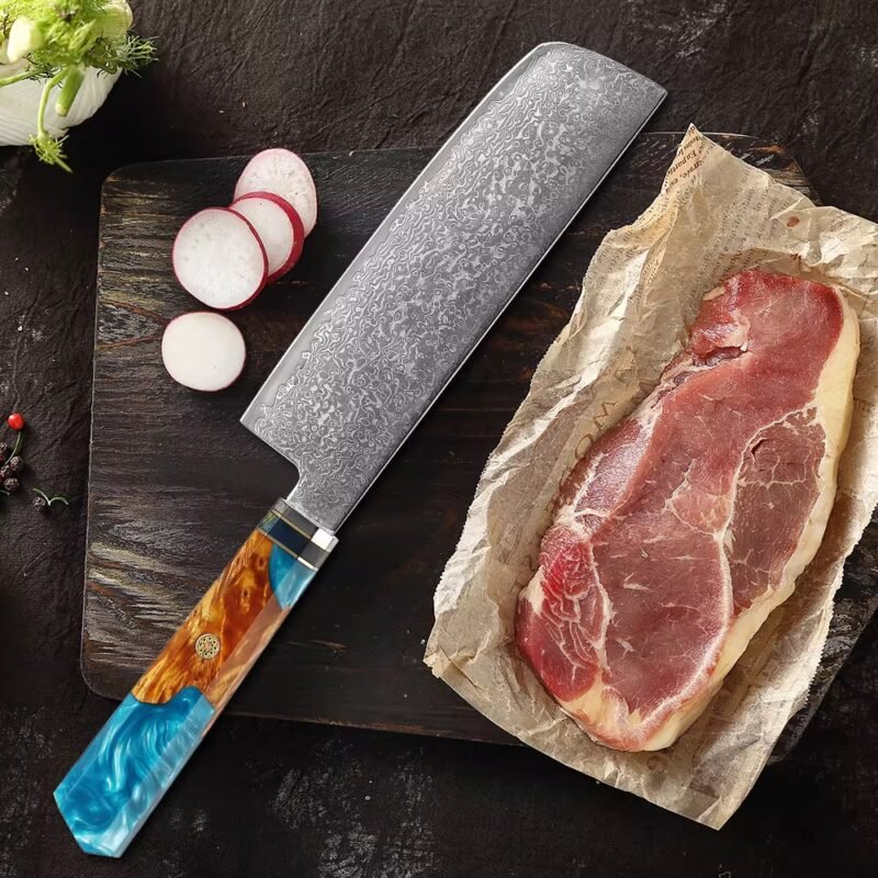 67-layer Damascus steel knives are known for their stunning appearance and exceptional durability. The distinctive layered structure enhances the blade’s strength, edge retention, and overall performance, making them an investment in both aesthetics and function.