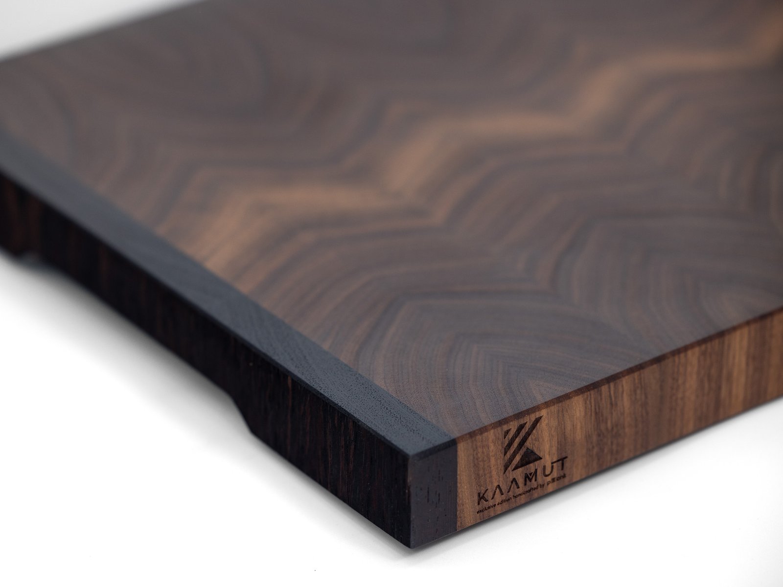The core is crafted from solid end-grain North American Black Walnut (Juglans Nigra, FSC-certified), widely regarded as the most luxurious and stable walnut species in the world.