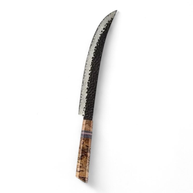 Timeless Design & Durability The Kaamut® Yoru Series Meat Slicer, like all knives in the series, is crafted from the finest materials to ensure that your knife not only delivers exceptional performance but also retains its beauty over time. The combination of Damascus steel, ergonomic handles, and a hammered finish ensures that the slicer is both functional and striking in any kitchen.