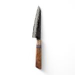 The Kaamut® Yoru Series Utility Knife combines elegance, functionality, and durability, crafted from 67-layer Damascus steel for exceptional sharpness and performance. This compact yet versatile knife is a must-have for any well-equipped kitchen, ideal for a variety of cutting tasks. Whether you’re slicing fruit, trimming meat, or making delicate cuts, this knife makes every task effortless and enjoyable. The hammered finish and unique Damascus pattern not only enhance its functionality but also create a beautifully crafted work of art.